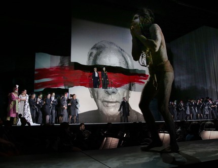 Певицы неплохо сливались в дуэтах, но теперь, когда обе они дефилируют по сцене на шпильках в брючных костюмах, не понятно вообще, кто из них травести – Арзаче или Семирамида. А их прикиды и эпатирующая внешность а-ля «мальчик-девочка» и «того», и «другой», провокационно апеллирующие к противоестественной андрогинности, убивают и либретто Гаэтано Росси, и саму музыку. Совершенно абстрактная, никак не связанная с сюжетом сценография и костюмы Стюарта Нунна, «подсвеченные» осветителем Джузеппе Ди Иорио, не создают локализацию и ауру заложенного в либретто и музыке театрального действа, а лишь намеренно уводят подальше от жизни, правды и здравого смысла, а весь этот semi-stage – форменная бесовщина с натуралистически-жесткими мизансценами.