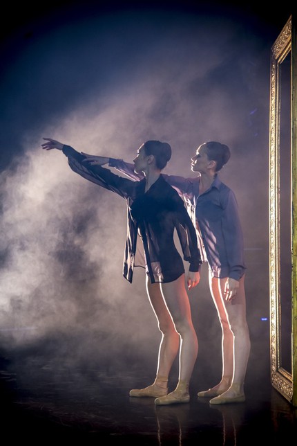 Вторая «зеркальная» рама, но уже вертикальная, по правому краю сцены, — образный аналог временного портала, вовлекающий героиню в ирреальное существование на грани сна и яви. В аннотации балетмейстер лишь представляет основную идею своего спектакля: «У всех нас есть свои воспоминания. Радостные и грустные. Одни остаются с нами навсегда, другие со временем исчезают. Героиня моего балета — женщина. На сцене она появляется в образе реального человека и её памяти. Она смотрит в зеркало и оказывается в зазеркалье, где рядом — ушедшие люди, где прошлое оживает. В зеркале мы видим не только свое отражение, но и свои переживания, всю свою жизнь».