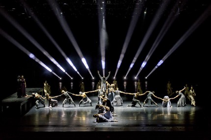 Весьма интересно представлено противостояние Ирода и Иродиады с Иоканааном. Правящая Галилеей супружеская чета возвышается на столе-помосте (трон земной — Материя) и с высоты своего царственного положения смотрит на стоящего на планшете сцены Иоанна Крестителя. И через мгновение мужской кордебалет рабов на вытянутых руках подхватывает Иоканаана с призывно протянутыми вверх руками, словно взывая к Богу (трон небесный — Дух), а рисунок кордебалета, образующий абрис креста, усиливает ощущение истинности, святости, жертвенности. И этот же стол-постамент ближе к финалу становится ловушкой для супружеской четы после смерти Иоканаана, когда Ирод и Иродиада, словно дуэлянты, с разного конца медленно приближаются навстречу друг к другу. Попытку Иродиады закрыть глаза Ироду (аллегория просьбы о прощении?), он яростно отвергает. Абрис креста оригинально обыгрывается и в финале постановки, когда мёртвая Саломея лежит в форме перевёрнутого креста – своего рода «распятая душа» героини.