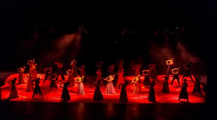 Для М. Авахри кордебалет – это «живая материя», которая служит художественному воплощению нескольких аспектов: основного (оргиастические танцы), фонического (расслаиваясь до пяти «пластов» по вертикали и горизонтали), аккомпанирующего (во время сольных и дуэтных номеров с участием главных персонажей) и комментирующего (направление больших пальцев вниз — требование смерти пророка и т.п.).