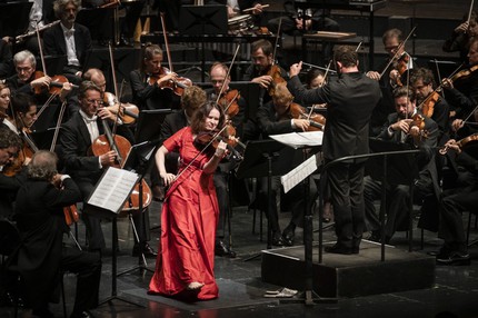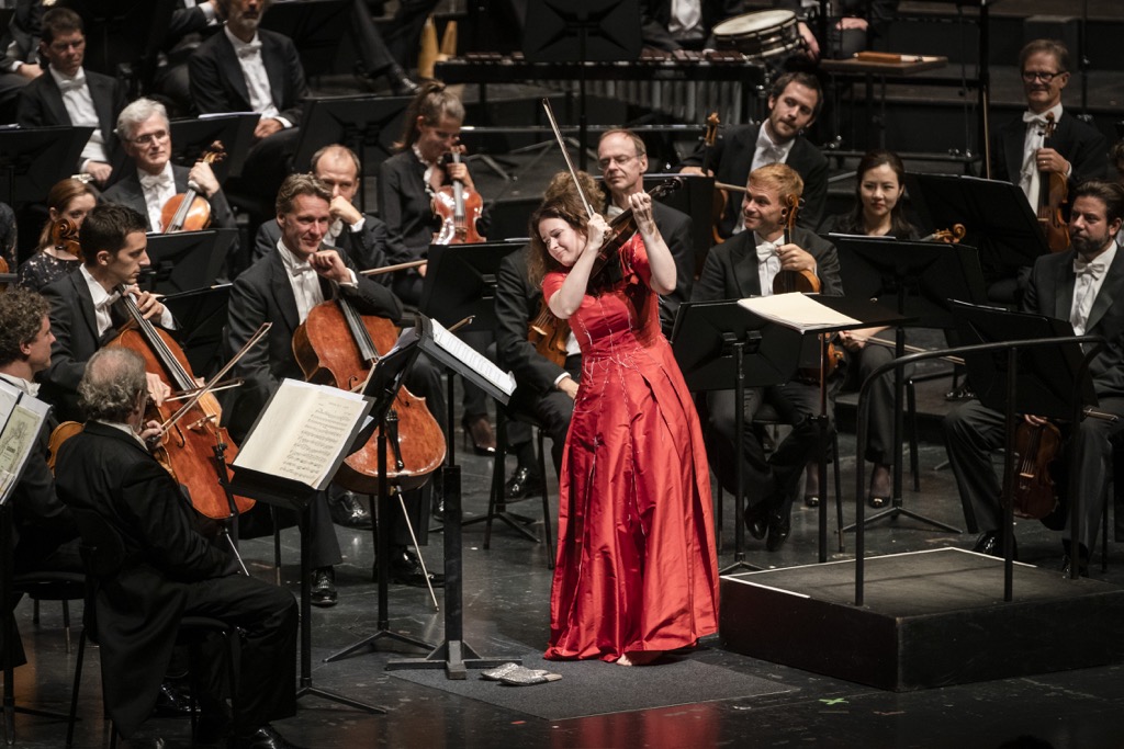 Швейцарская скрипачка Патриция Копачинская выходит на сцену, как на баррикады – босая, в платье швами наружу, держа скрипку на манер копья. Выходит сражаться со стереотипами и побеждает. Интригующий, лиричный, игривый – совершенно не те слова, которые ассоциируются с Шёнбергом, но именно так он прозвучал у Копачинской. Задорная и капризная скрипка ведет диалог-спор с оркестром, обижаясь, передразнивая, замирая на пределе слышимости во второй части, упрямо выныривая из марша в финале. Копачинская подчеркивает экстравагантную театральность этой музыки, сближая ее с «Лунным Пьеро» (по словам скрипачки, именно это произведение дало ей ключ к пониманию скрипичного концерта, а разговорную партию Пьеро она даже специально выучила наизусть).