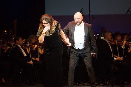 Баритона Владислава Сулимского, солиста Мариинского театра, на прошлогодней церемонии мы также уже слышали, но в ранге лауреата премии CASTA DIVA за 2017 год. Истинным мастером он показал себя и на этот раз, представ в двух ариях, требующих «тяжелого» музыкального драматизма – в арии Жерара «Nemico della patria?!» из «Андре Шенье» Джордано и в монологе Яго «Credo in uno Dio crudel» из «Отелло» Верди. А с сопрано Татьяной Сержан, солисткой Мариинского театра, лауреатом премии CASTA DIVA за 2016 год, которую она, приняв участие в концерте, смогла получить лишь сейчас, певец исполнил два вердиевских дуэта – Аиды и Амонасро из «Аиды» и Леоноры и Графа ди Луны из «Трубадура». Татьяна Сержан давно уже завоевала звание истинно вердиевской певицы, что и на сей раз с блеском подтвердила, но в ее эмоционально-страстной интерпретации весьма интересно было услышать и выходную арию Адриенны Лекуврер из одноименной оперы Чилеа.