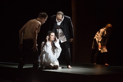 Соавтором композитора на сей раз выступили британец Ян Латам-Кёниг (музыкальный руководитель и дирижер постановки, главный приглашенный дирижер и председатель Художественно-творческой коллегии театра) и команда во главе с режиссером Екатериной Одеговой. В нее вошли Этель Иошпа (сценограф и художник по костюмам) и Тимофей Ермолин (художник по свету). А подробно задерживаться на базовых моментах и сюжете, связанных с оперой на англоязычное либретто Рональда Дункана по одноименной пьесе француза Андре Обé, как это было сделано ранее, сейчас не будем.