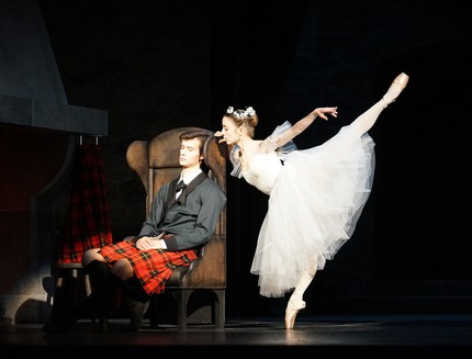 Сильфида завлекает и одновременно отталкивает Джеймса, губит его, и в то же время она сама очень хрупкая, так легко убиваемая. В этой партии Эмма Луцибелло не слишком эфемерно «взлетала на крыльях восторга и мечты», но на пуантах стояла уверенно и устойчиво, была изысканной. Остальные сильфиды казались ни в чём ей не уступающими. Па-де-де с Дидаром Сарсембаевым (Джеймс) смотрелись гармонично; из-под килта мелькали его мускулистые бёдра, чем он больше всего и запомнился.