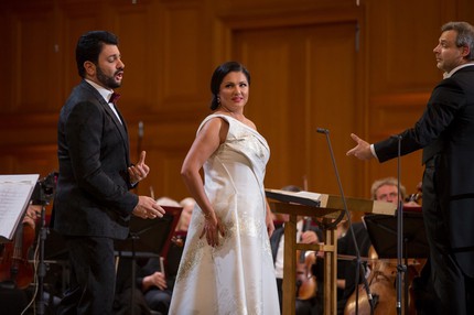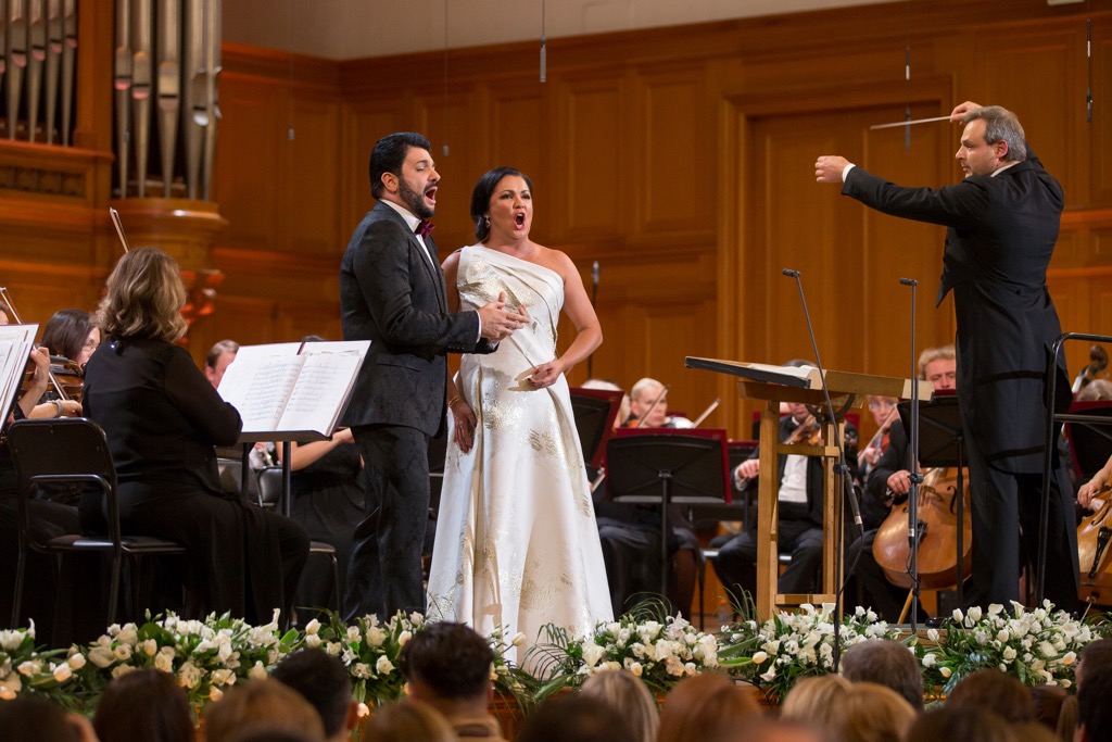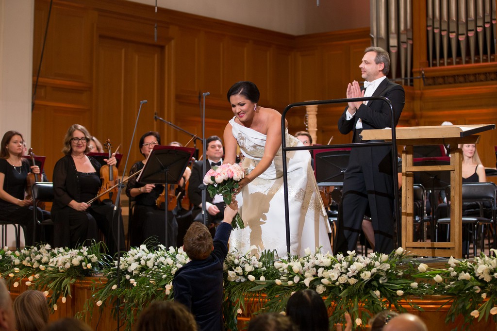 Когда благородная цель оправдывает затраченные средства, то почему бы именно так организаторам и не поступать! Так что выбор Анны Нетребко на роль именно такой звезды идеален, если сегодня не единственен. А поскольку без своего супруга Юсифа Эйвазова она практически и не выступает, то это значит, что на таком «бомонде» в качестве бонуса можно будет поглядеть и на него… Итак, главная звезда этого вечера открыла его арией Луизы «Depuis le jour» из одноименной оперы Гюстава Шарпантье. Следующую порцию «музыкального света звезды» мы получили в ансамбле с Юсифом Эйвазовым – в дуэте Адриенны и Мориса «Ma dunque è vero? Dite» из «Адриенны Лекуврер» Чилеа. А Герда и дивная баркарола Никлауса и Джульетты «Belle nuit, ô nuit d’amour» из «Сказок Гофмана» Оффенбаха, спетая в ансамбле с Екатериной Губановой, были уже во втором отделении.