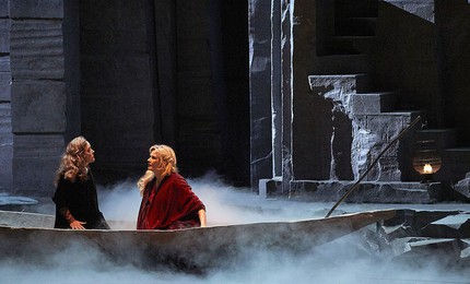 Что сделал с этим многослойным произведением режиссёр новой юбилейной постановки искусствовед Винсен Уге? Собственно, ничего. Искусствовед ничего в опере не понял. Ни по существу новой мифологии, ни по вопросам продолжения рода сказать, ни даже на тему театральной организации сценического пространства сказать ему, очевидно, нечего. Почему человек, только начинающий свою карьеру на режиссёрском поприще и ещё не поставивший ни одного заметного самостоятельного спектакля, приглашается на такую сложнейшую работу на главную оперную сцену мира, сказать сложно. Возможно, москвичам и гостям столицы повезёт больше, и в ожидающейся декабрьской премьере «Дидоны и Энея» Г. Пёрселла г-н Уге покажет себя с новой, неожиданной, талантливой стороны.