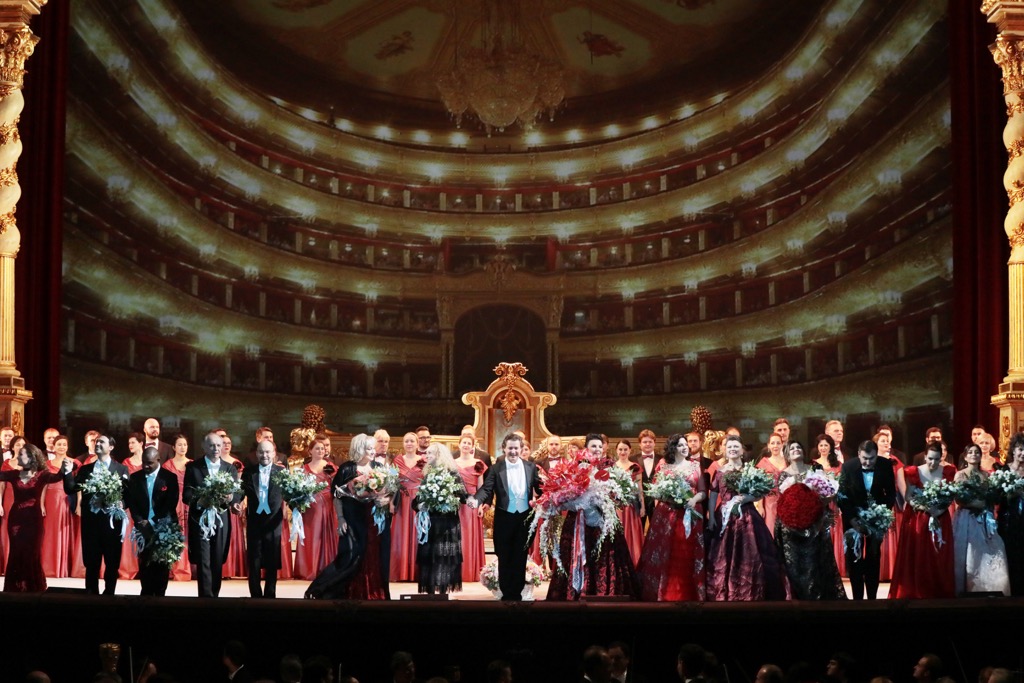 Второй блок – оркестровая и оркестрово-хоровая музыка, и в нём прозвучали полонез из «Бориса Годунова» Мусоргского, фрагмент сцены триумфа (со знаменитым маршем) из «Аиды» Верди, вальс из музыкальных иллюстраций Свиридова к повести Пушкина «Метель», антракт к четвертому акту «Кармен» Бизе, интермеццо из «Сельской чести» Масканьи и финальный хор «Славься!» из «Жизни за царя» Глинки. Сюда можно отнести и инструментальную версию арии Каварадосси из «Тоски» Пуччини: сольная партия в ней была поручена трубе, соло на которой исполнил Владислав Лаврик. Сей блок де-факто выполнял роль музыкальной субстанции, связующей вокальные номера. Всё в нём было на хорошем, достойном уровне, и этого при его характеристике вполне достаточно, ведь главной приманкой Оперного бала стали, конечно же, сольный вокал и певцы. Так что на очереди – третий блок, и это музыка русских композиторов.