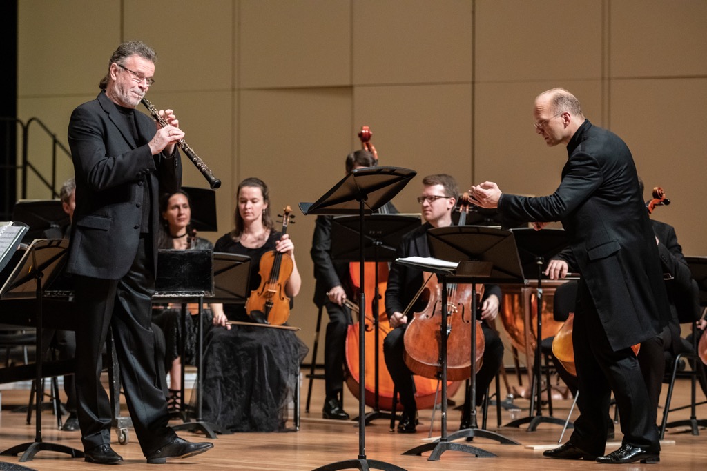 Однако виртуозная моторика финала говорит уже о близости музыки к динамичному стилю итальянского концерта. Услышав этот опус в переложении для солирующего гобоя, его внутреннюю ритмику, его изящество, его виртуозность мы, понятно, смогли ощутить в совершенно ином звуковом измерении, но оно властно захватило и своей стройностью, и своей потрясающей гармоничностью. При исполнении этого произведения центр тяжести с дирижера, естественно, перенесся на солиста, тем более такого блистательного, такого фантастически музыкального и техничного, каким всегда был и каким показал себя и на этот раз Алексей Уткин. И всё же необходимо воздать должное мастерству и слаженности всего ансамбля исполнительских сил – и солиста, и дирижера, и музыкантов оркестра.