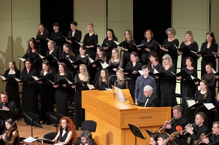 Итак, два отделения концертной программы – два «Магнификата», но помимо них в первом отделении прозвучала известная и популярная Сюита № 3 для оркестра ре мажор И. С. Баха (BWV 1068), а во втором – Концерт для гобоя с оркестром до минор, который явился переложением Концерта для флейты с оркестром ре минор К. Ф. Э. Баха (H 426). Партию гобоя в нём исполнил Алексей Уткин, а дирижером всей программы как раз и стал Хансйорг Альбрехт. Он является не только художественным руководителем Мюнхенского Баховского хора, но и Мюнхенского Баховского оркестра, сочетая в своей музыкальной деятельности также практику клавесиниста и органиста. Этот дирижер, в чём можно было убедиться на концерте в Москве, оказался чутким, педантично-рафинированным носителем исполнительских традиций старинной немецкой музыки, и его выступление с Камерным оркестром России стало образцом всецело завораживающего творческого альянса.