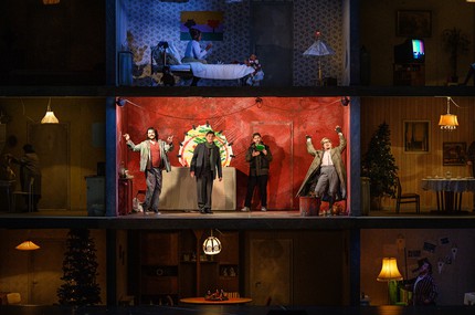 Во втором действии все радуются жизни и приближающемуся Рождеству на фоне огромного «бронзового» Деда Мороза с открывающейся пастью. Можно ли поставить песенку Мюзетты (Мариам Баттистелли) как-то иначе, чем танец с элементами стриптиза? В этом я уже начинаю сомневаться.