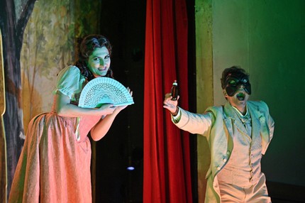 Зрители-селяне наблюдают представление комедиантов на импровизированной сцене передвижного балаганчика, но центральную часть «пьесы» – после экспликационного ариозо Арлекина – режиссер с помощью поворотного круга уводит за кулисы в гримерку – в «святая святых» артистического мира, в которой Тонио, кстати, и пел свой знаменитый пролог. Зрителям в зале театра эта часть представления – театра в театре – отыгрывается как кошмарное видение на почве ревности Канио-Паяца, в котором возникают и Недда-Коломбина, и Тонио-Таддео, и Беппе-Арлекин. Еще один поворот сценического круга – и финал представления с Сильвио («Арлекином» из реальной жизни) заканчивается на сцене балаганчика двойным убийством. «La commedia è finita!» – вещает Тонио, в то время как Канио в оцепенении стоит с окровавленным кинжалом. Так за что же нам любить Тонио? Да нé за что, и поэтому наши сердца обращены к «безумцу» Канио и двум убиенным им…