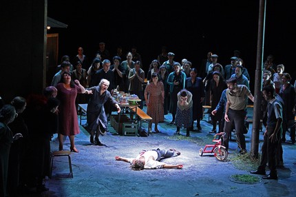С точки зрения «веризма XX века», увиденного взглядом из XXI века, в котором мы живем, эстетика реалистичного конструктивизма предстает едва ли не современной классикой! И в каждой из опер режиссер поднимает важные психологические аспекты человеческого бытия. «Сельская честь» стартует с «немой» сцены поселян и «мамы» Лючии, стенающей на «трупом» своего сына под его «выходную» сицилиану, которая и на сей раз поется исполнителем за сценой. Этой же сценой, не замыкая, а, определенно, продолжая вечный круговорот людских судеб в природе, опера и завершается. Всё предрешено было уже давно, и случилось то, что должно было случиться, но распутывание режиссером клубка отношений и противоречий в мире людей с помощью потрясающе выстроенных мизансцен всё равно рельефно, ярко и сочно, всё равно не теряет своей социально-проповеднической значимости и нравственного увещевания.