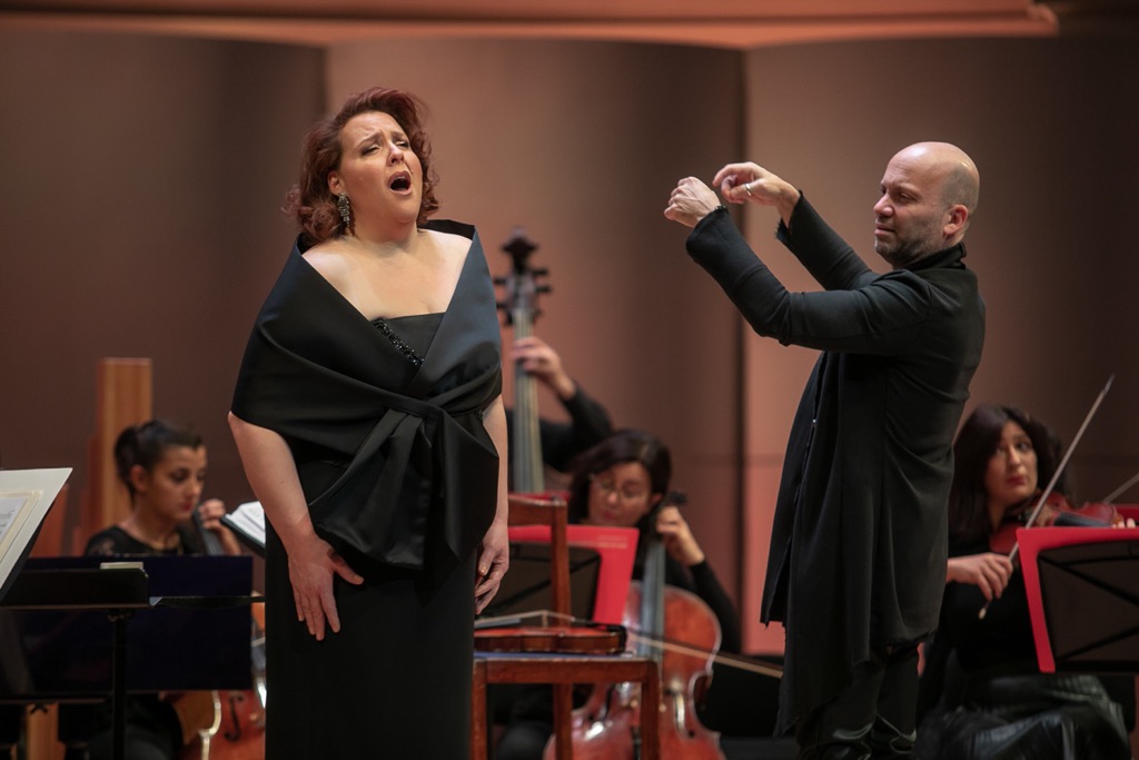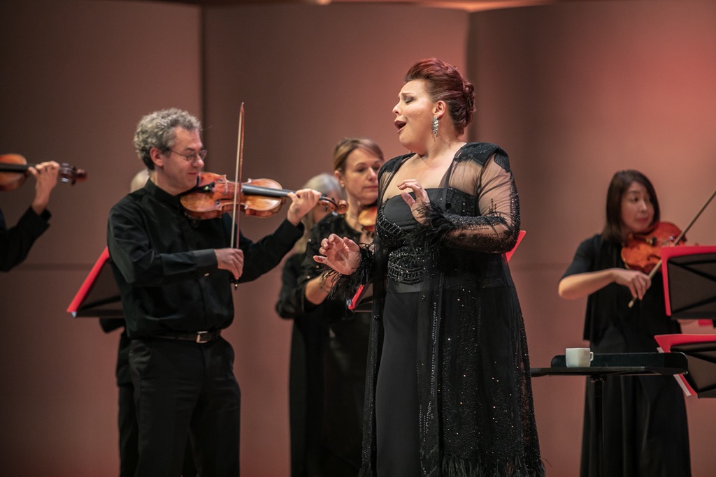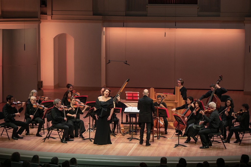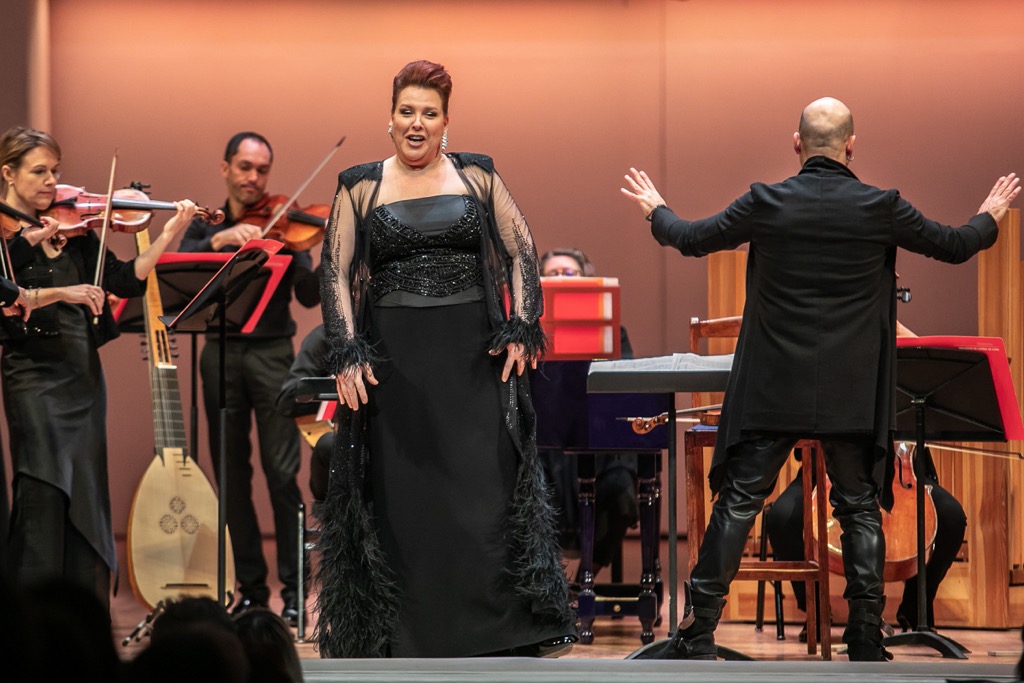 Нынешний оркестровый рецитал Мари-Николь Лемьё состоялся в Концертном зале имени П.И. Чайковского 26 ноября. Концерт невероятно яркой и харизматичной певицы-контральто из Канады произвел поистине ошеломляющее, мощнейшее по его вокальной энергетике музыкальное впечатление. И рецензенту со всей очевидностью пришлось даже сокрушиться на тот счет, что в прошлый – и, кажется, первый – приезд певицы в Москву весной 2017 года услышать ее в силу личных форс-мажорных обстоятельств не довелось. Тогда певица сосредоточилась на романтическом репертуаре (а именно – на Россини), но на этот раз обратила взор к музыке барокко. Тогда она выступила в сопровождении Российского национального оркестра, а за дирижерским пультом находился канадский маэстро Жан-Мари Зейтуни. Сейчас – в соответствии с избранным репертуаром – мы услышали певицу под аккомпанемент Барочного оркестра Лионской оперы «I Bollenti Spiriti». Творческая специализация этого коллектива – исторически информированное исполнительство, и возглавляет его итальянец Стефано Монтанари. Сей художественный руководитель экстравагантен, но музыкально вдумчив и утонченно изыскан, и на этот раз он предстал не только в ипостаси дирижера, но и скрипача-солиста.