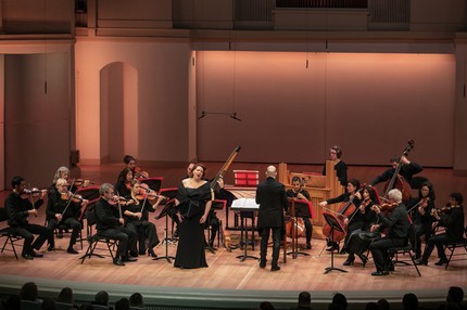 Нынешний концерт также оказался монографическим, и в нём исполнялась музыка Вивальди. Он стал запоминающимся финалом филармонического абонементного цикла нынешнего сезона «Мастера оперной сцены», и возвышенным в нём можно назвать первое отделение, а земным – второе. Величественным базисом музыки, открывшим программу вечера, стала «Stabat Mater» для контральто, струнных и basso continuo (1712, RV 621). Вслед за ней прозвучал Концерт ре минор для двух скрипок, виолончели, струнных и basso continuo (1711, из цикла «Гармоническое вдохновение», op. 3, № 11, RV 565), а в начале второго отделения мы услышали Чакону – третью часть Концерта до мажор для струнных и basso continuo, написанного предположительно в 1720-е годы (RV 114). Эти инструментальные номера, прозвучавшие между духовной католической секвенцией (гимном) «Stabat Mater» и секулярным оперным блоком, ставшим базисом второго отделения, составили восхитительную переходную прослойку.