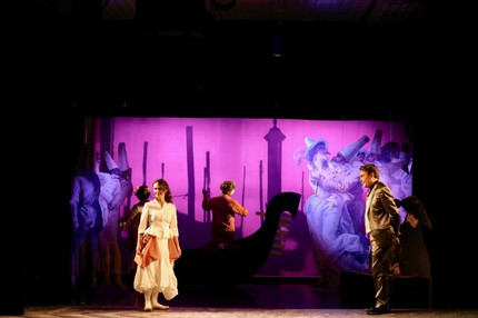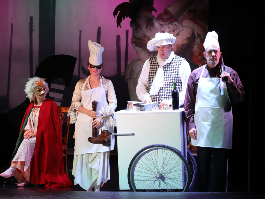 Оперетта наполнена танцевальными мелодиями, и поэтому режиссура Стефана Хауфе во многом строится на танцах и пританцовываниях. Поскольку исполнители в Гамбургской камерной опере – не балетные артисты, в целом их движения в шляпах в виде свинок и птичек среди картонных гондол производят мало впечатления. Довольно бессмысленной показалась сцена с ужином, где повара подают герцогу к столу ботинок, а его спутниц в масках посыпают сыром. Одним из немногих юмористических эпизодов стал момент, когда дамы в парикмахерской читали немецкий журнал «Барбара».