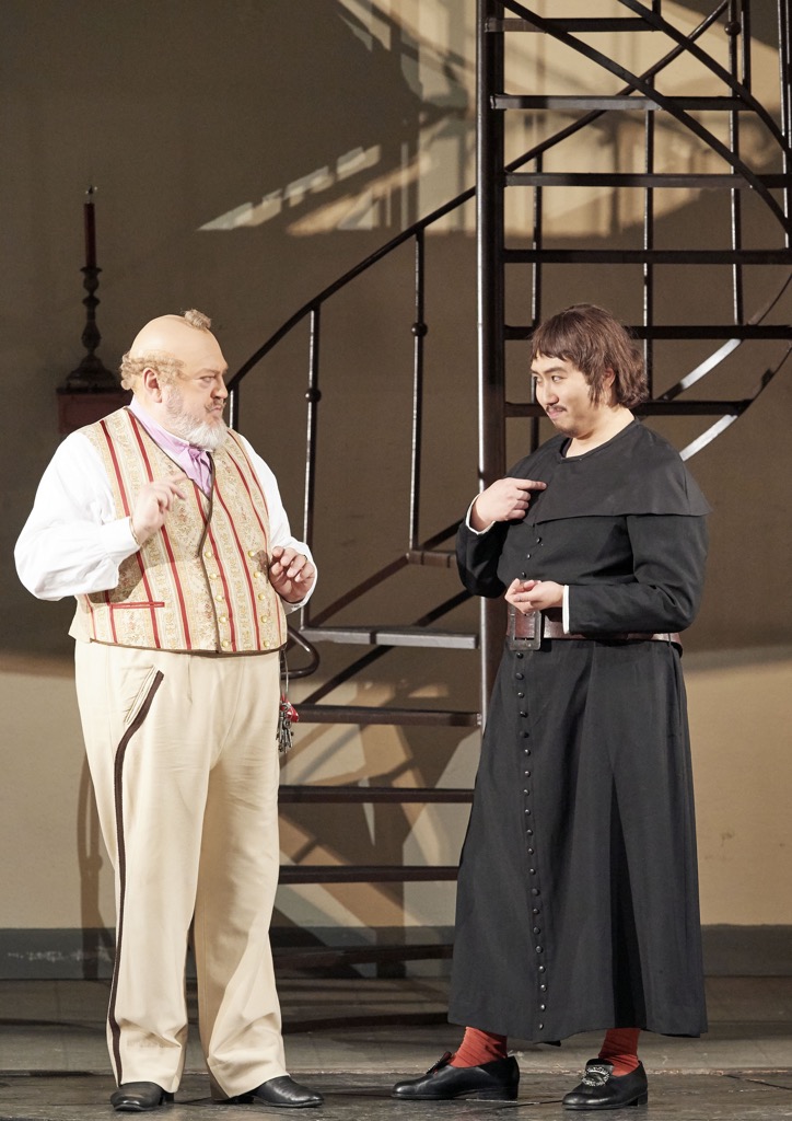 В цехе низких мужских голосов дела обстояли довольно ровно и музыкально стильно. И пусть обязательнейший итальянский баритон Паоло Румец в фундаментальной, но всё же не ярко притягательной арии своего персонажа Бартоло несколько недобирал в комической скороговорке, темпераментно-бархатный, потрясающе вальяжный чешский баритон Адам Плахетка в партии Фигаро и забавно-зычный южнокорейский бас Джон(г) Мин Парк в партии Базилио просто попали в десятку! Этим двоим певцам мощными ариями-шлягерами их персонажей в гротесково-комическом ракурсе приковать внимание публики с первого же выхода на сцену оказалось довольно легко: спели – и сразу положили зрительный зал на обе лопатки! Совсем иное дело – партия Альмавивы, выходная ария которого с каскадом виртуозной техничности по части колоратуры требует изысканно утонченного прочтения и всеобъемлющей музыкальной интеллектуальности.