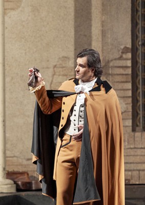 Сценограф и художник этой элегантной, невероятно тонкой и потрясающе зрелищной продукции – Альфред Зирке, а в отношении ее режиссера зрительская программа ведет себя более осторожно, сообщая, что постановка основана на режиссерской концепции Гюнтера Реннерта. И это абсолютно естественно: ведь «застыть» более на полвека после премьеры спектакль просто не мог. Естественно, не имея возможности сравнить, как было и как стало, при просмотре, тем не менее, невозможно было отделаться от ощущения того, что ты попал в абсолютно иную, начисто отвергнутую современным режиссерским театром эстетику здравого смысла и захватывающей выразительной плакатности. Во главу угла реализованной концепции поставлены оригинальный сюжет (то, о чём мы давно уже успели подзабыть), интеллектуальный пиетет к самой эпохе создания оперы (1816) и безусловная опора на музыку, которой в этой постановке подчинено решительно всё!