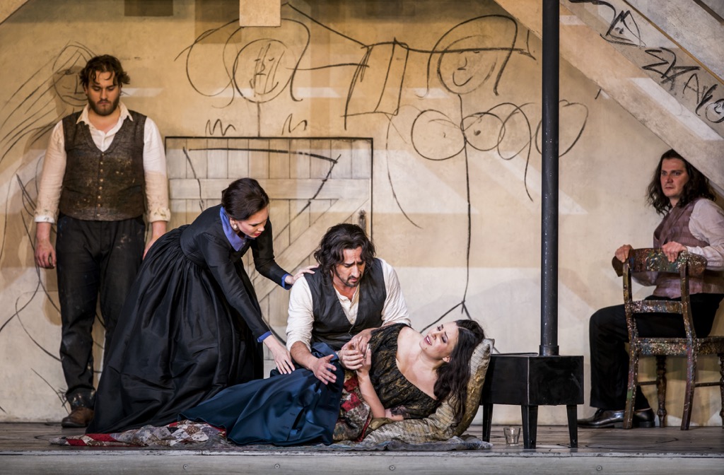 Обе сопрано стремительно быстро вознеслись на мировой оперный Олимп: сначала Соня Йончева, а затем и Аида Гарифуллина. Обе – лауреаты I премии могущественной «Опералии» (соответственно 2010 и 2013 годов), заправляемой вездесущим баритоном-тенором Пласидо Доминго. Так что сегодня они «намертво» схвачены в тиски своих мощных агентур, которые весьма успешно и коммерчески напористо прокладывают им дорогу на лучшие сцены мира. Престижные подмостки театра «Ковент-Гарден» Соней Йончевой обжиты уже давно, а для Аиды Гарифуллиной партия Мюзетты в обсуждаемой постановке «Богемы» стала здешним сценическим дебютом. В сезоне 2017/2018 партию Мюзетты она спела также в Париже в новой постановке на сцене Оперы Бастилии, и в той же постановке на партию Мими была ангажирована не кто иная, как Соня Йончева! Правда, спев тогда свой первый спектакль – премьера состоялась 1 декабря 2017 года, – Мими сошла с дистанции из-за форс-мажора, связанного с болезнью. В начале этого года на возобновлении лондонской постановки эти певицы встретились уже на серии спектаклей, но к тому оптимизму, что ассоциировался с потенциалом Сони Йончевой еще пять-шесть лет назад, ее сегодняшняя вокальная форма, увы, не располагает.