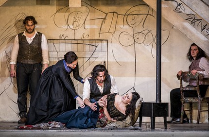 Так что постараемся «раствориться» в музыке и певцах, хотя сделать это в данном случае будет не столь легко, как в самóй постановке, и начнем с оркестра и дирижера. Оркестр театра «Ковент-Гарден» был отдан на откуп французскому маэстро Эммануэлю Вийому. С сезона 2015/2016 этот музыкант – художественный руководитель и главный дирижер оркестра «Пражская филармония», и под управлением своего шефа сей коллектив в абсолютно ином – камерном – репертуаре когда-то произвел на рецензента весьма яркое эмоциональное впечатление. Но эмоциональность тонковеристской, с позволения сказать, партитуры Пуччини – субстанция абсолютно иного масштаба страстей, и той обжигающей темпераментности, той пылкой и волнующей «итальянскости», пусть и помещенной на почву французского сюжета, той живой и терпкой сочности, что несет градус этой музыки, испытать в живом восприятии неожиданно не довелось.