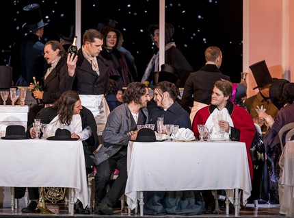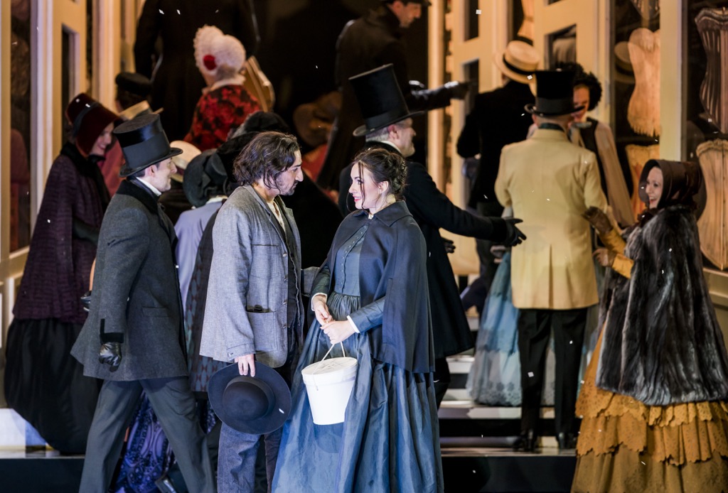 Зато вся «богемная» четверка мужских персонажей говорила с нами на языке Пуччини. В партии поэта Рудольфа предстал довольно известный американский тенор Чарльз Кастроново, с которым через день довелось встретиться на этой же сцене в партии Альфреда в «Травиате». В отличие от этого вердиевского типажа, партия которого, в основном, написана лирико-романтическими красками, пуччиниевский Рудольф ожидаемо стал попаданием в десятку. Ожидаемо потому, что когда-то давно в другой опере Пуччини – в малорепертуарной «Ласточке» – этот певец весьма удачно смог вписаться в музыкально родственную с точки зрения стиля партию Руджеро Ластука: это произошло на сцене «Дойче Опер» в Берлине в 2015 году.