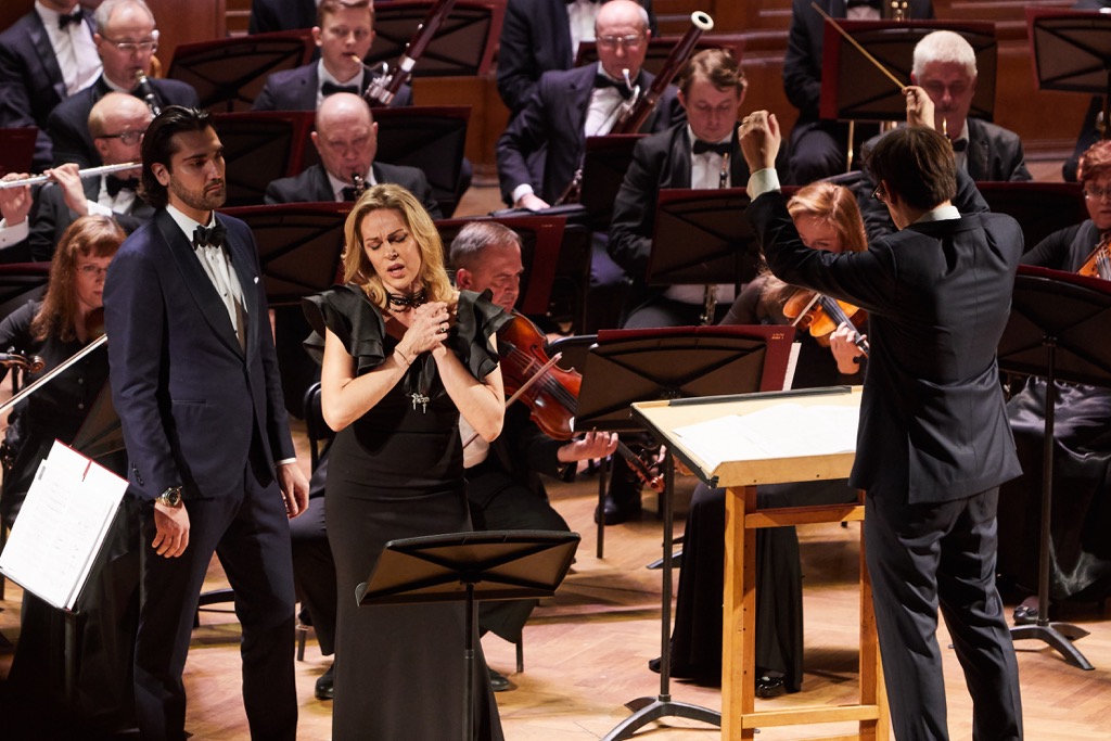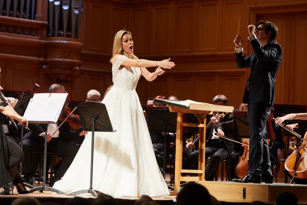 Речь же пойдет о концерте в Большом зале Московской консерватории, который состоялся 25 февраля в сопровождении Оркестра Московского музыкального театра имени Станиславского и Немировича-Данченко. За его дирижерский пульт встал французский маэстро Адриан Перрюшон, а еще одним участником вечера явился тенор чилийско-американского происхождения Джонатан Тетельман. В программу вошли и оркестровые фрагменты: их было настолько много, что они практически чередовались с вокальными номерами – ариями и дуэтами из опер. Оркестр звучал дежурно и неинтересно, если не сказать рутинно, а вопросы к нынешней вокальной форме певицы вызвал первый же исполненный ею номер – знаменитая ария Русалки из первого акта одноименной оперы Дворжака. Вместо чувственной кантилены и драматической аффектации мы получили эрзац пения, а вместо академического благородства, ровности и торжества изысканно мелодической красоты вокальной линии – робкое иллюстраторство…