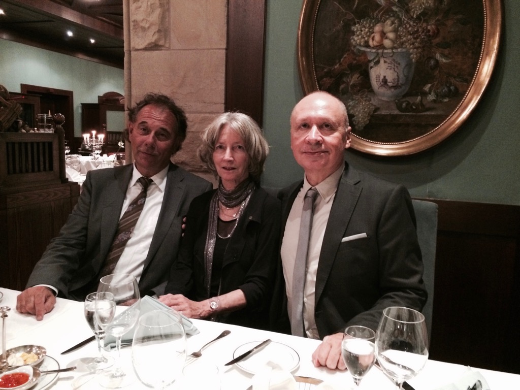 Борис Блох с Нике Вагнер, правнучкой Вагнера. Слева — Удо Штайнгребер, директор байройтской фирмы роялей