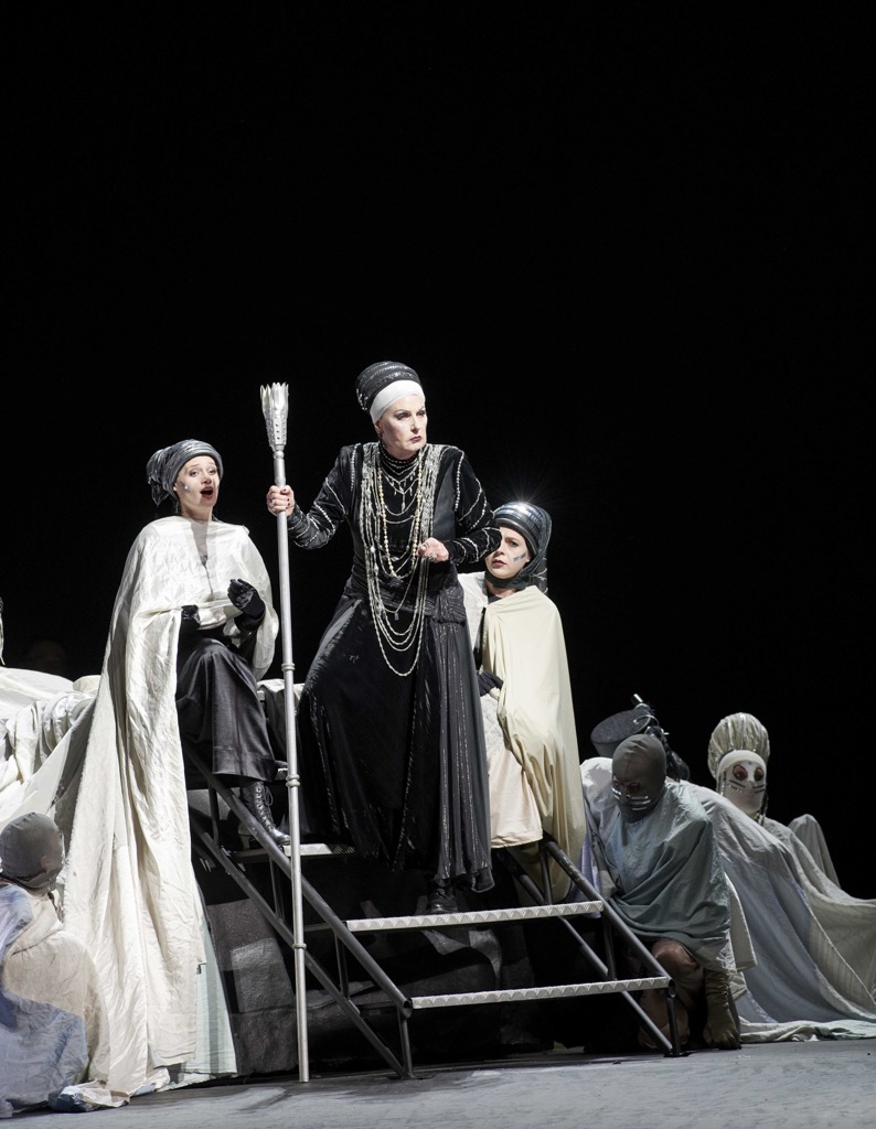 Чуть старушечьим, но уместным в рамках общей концепции голосом озвучила партию Клитемнестры Дорис Соффель. Эмоционально же это было и надрывно, и истерично, и мощно.