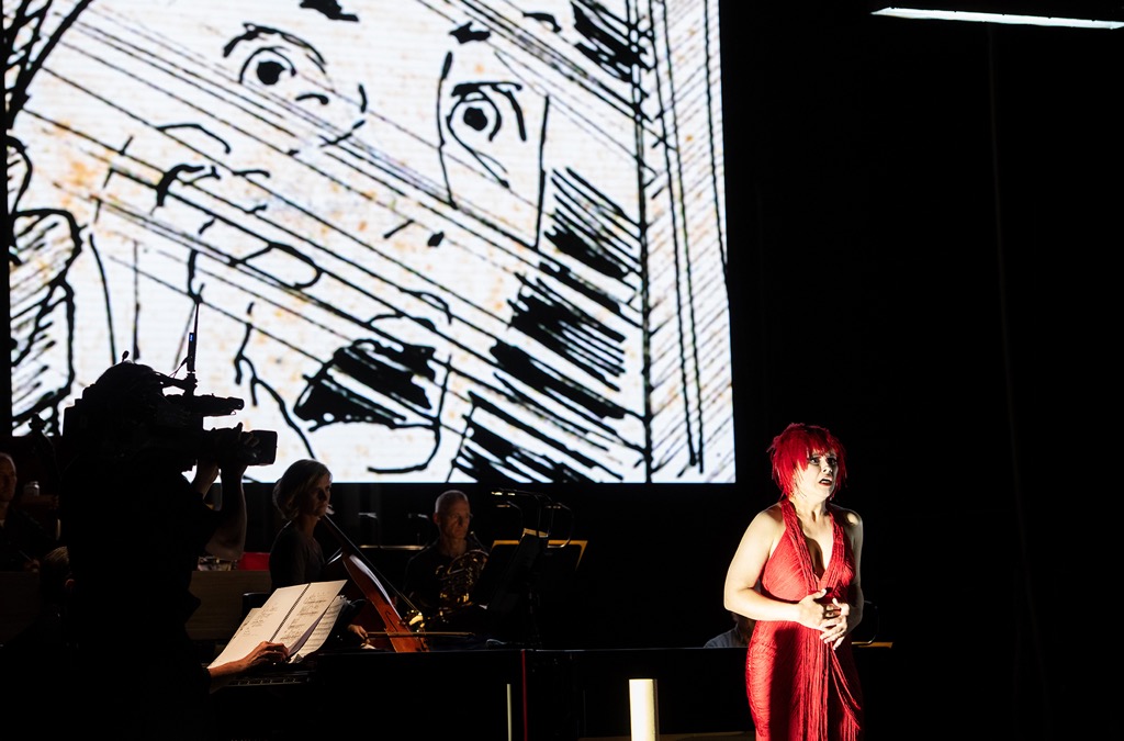 Наконец, из глубины туннеля решительно вышла в красном комбинезоне известная немецкая драматическая актриса Валери Чепланова, чтобы сыграть Анну — героиню «Семи смертных грехов» Курта Вайля. В либретто Бертольда Брехта рассказывается о том, как американская девушка Анна зарабатывала на домик в Луизиане, пока практическая и артистически-романтическая стороны её личности находились в непрерывном конфликте. Главные христианские грехи — гордыня, скупость, зависть и т. д. — здесь преломляются в капиталистических реалиях 1930-х годов. Например, одна сторона Анны охраняет другую от впадения в грех обжорства — по контракту как танцовщица она не имеет права набрать ни грамма.
