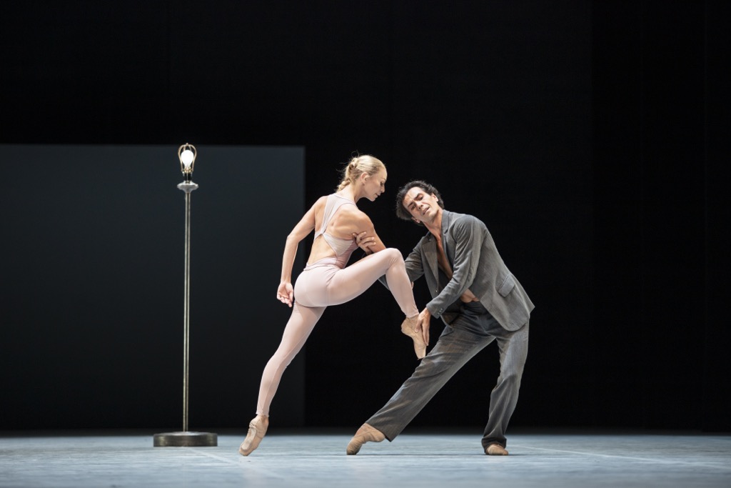 Представление начинается, как это часто бывает у гамбургского балетмейстера, без музыкального сопровождения. На сцене появляются призраки Маргариты (Анна Лаудере) и Армана (Эдвин Ревазов) из балета Ноймайера «Дама с камелиями».