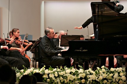 Успешно прозевав открытие фестиваля, на котором в исполнении Михаила Плетнева совершенно гениально (по отзывам) прозвучал Третий фортепианный Бетховена, а во втором отделении оркестр представил на суд публики Четвертую симфонию Брамса (дирижировал в тот вечер Василий Петренко), я начала свое паломничество по фестивалю со второго концерта. Точнее, так: со Второго концерта. Сен-Санса. Именно это сочинение стало сердцем и душой вечера. Концерт этот популярный, красивый до дрожи в коленках, остроумный, изящный, театральный. Пианистам есть где проявить себя, публике есть где пустить слезу, а потом весело улыбнуться.