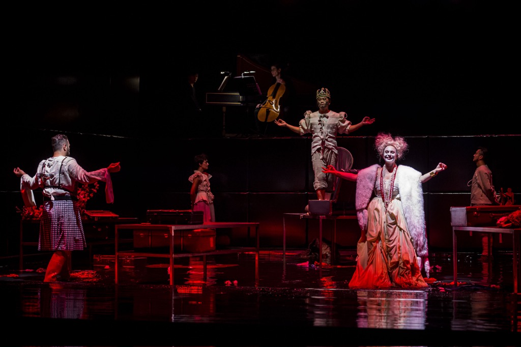 Режиссёр Антони Пилавачи и сценограф Татьяна Ившина поместили действующих лиц в тёмное безвыходное пространство. На пол налили воды, в ней мокнут пышные юбки принцессы Элизы. Все — в смирительных рубашках, в соответствии с вопросом, поставленным американским писателем Кеном Кизи: «...неужели, чем безумнее человек, тем он может быть могущественнее?» Все персонажи, запертые в этом дурдоме на воде, постоянно поддерживают между собой дистанцию, у каждого свой чемоданчик с реквизитом и своё место на сцене. Элиза тянется в любовной тоске к Птолемею, но не может к нему прикоснуться. Египет представляет статуя кошки в цветах.