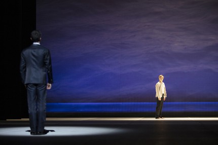 Сразу три роли блестяще исполняет и Анна Лаудере. Она то преданная Ашенбаху ассистентка в строгом костюме, обеспечивающая надёжную работу балетной машины и удобство Ашенбаха как её двигателя; то босая мать Ашенбаха в лёгком белом платье; то мать Тадзио в полагающихся ей жемчугах.