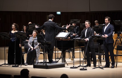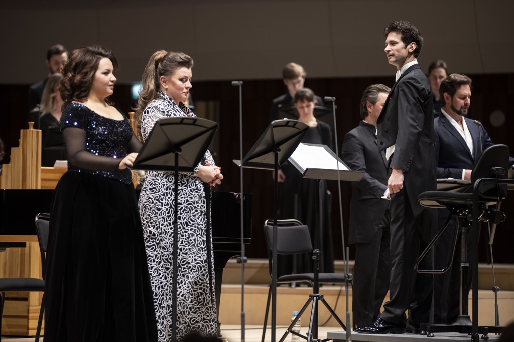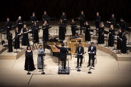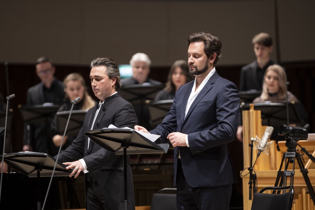 Упомянутое исполнение на фестивале в Пезаро проходило в небольшом – всего на 850 мест – Театре Россини с традиционной ярусной архитектурой, и хористов в нём было тогда и впрямь восемь. В нынешнем исполнении в Большом зале современного, оборудованного по последнему слову техники концертного комплекса «Зарядье» хористов было заведомо больше, но это и понятно, ведь акустические условия этих двух исполнений – абсолютно разные. В миниатюрном театре Пезаро всё было окутано салонно-камерной атмосферой, а сейчас в Москве прошло на духовно-камерной волне, словно в «Зарядье» нас пригласили на мессу в воображаемом храме, которым и стало здание музыки, возведенное всеми его строителями – музыкантами, певцами-солистами, артистами хора и дирижером.