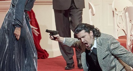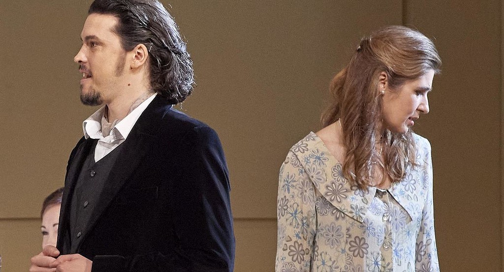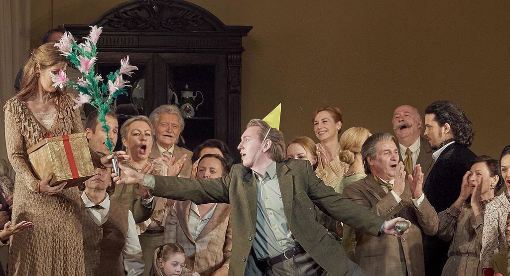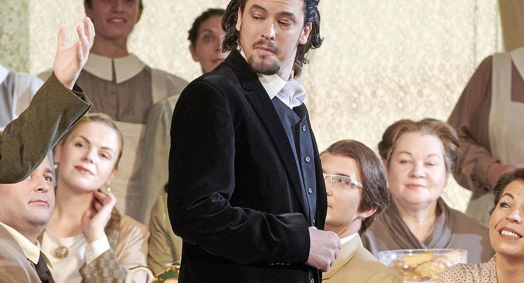 Между тем, исполнитель партии Онегина итальянец из Южного Тироля Андре Шуэн представил нам едва ли не эталонное прочтение этого образа. Модельная внешность, чарующий переливающийся шёлковыми оттенками тембр, от одного только звука которого, рискну предположить, все женщины превращаются в Татьян и начинают требовать пера-бумаги, чтобы признаться и изъясниться; мужчины же начинают психовать подобно Владимиру Ленскому, потому что шансов на успех в конкуренции с таким парнем ни у кого из нас просто не остаётся. Этот фантастически совершенный образ совсем иначе оттеняет невротический срыв Ленского: малоопытному восемнадцатилетнему поэту, конечно же, очевидно, что если Ольга была близка с этим холёным красавцем «все экосезы, все вальсы» (танцы довольно интимные, как мы помним), то уж остальное «взаимодействие» с ним – просто дело техники, как говорится, повернуться не успела…