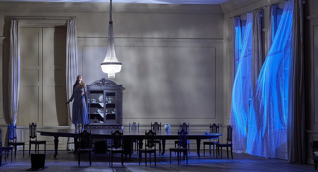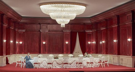 Между тем, невероятный восторг у критики вызвало оформление спектакля «те же люстры, тот же стол». Вот увидела австрийская критика в этом «замкнутом пространстве отражение внутренней изолированности героев, их одиночество в толпе» («Tiroler Tageszeitung»). Как говорил известный персонаж Гришковца, ну что ж, если даже критики довольны, значит, и мне повезло. Стол узнаваем. Стол прекрасен. Стол у Чернякова изумительно обыгран почти везде. Но! В который раз замечу: этот «стол во всю сцену» придумал не Черняков. Это гипертрофированная цитата из хрестоматийного спектакля К. С. Станиславского 1922 г. (IV картина). Черняков этот стол Станиславского просто укрупнил (во всех смыслах).