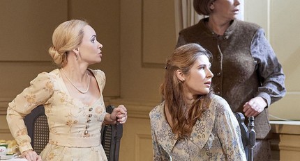 И это понятно: зритель, выросший на родине З. Фрейда и с детства впитавший его психоаналитические подходы, без труда считывает в спектакле Чернякова и ясные мотивационные модели действующих лиц, и внутренние их взаимосвязи друг с другом, и живописно выстроенную психологическую мозаику драматургии. Впрочем, образ Филиппьевны как ценнейшая находка режиссёра оказался, по моим наблюдениям, не по зубам и продвинутой венской публике: никто из рецензентов не обратил внимания на филигранность этой интерпретации. Разумеется, Лариса Дядькова виртуозно справляется с этим волшебно прорисованным характером умной, интеллигентной женщины (как тут не вспомнить Алису Витальевну из «Покровских ворот»!).