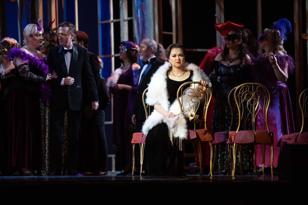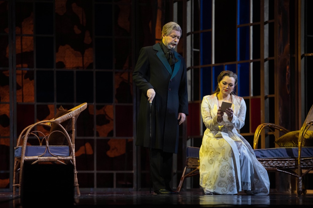 Впервые – и единожды – увидеть «Травиату» Верди в Казани рецензенту довелось в 2015 году на 33-м Шаляпинском фестивале. Эту постановку вместе со сценографом из Новосибирска Игорем Гриневичем и художниками из Москвы Ольгой Резниченко (костюмы) и Василием Степановым (свет) в 2007 году осуществила режиссер из Франции Жаннет Астер, и лишь в первый миг ее продукцию захотелось назвать типично женской. В чём же причина такого порыва? В аккуратной прилежности и той подкупающей оперной классичности спектакля, которая, не ставя во главу угла стопроцентно точное следование эпохе сюжета, отсылала к аромату этой сáмой эпохи удивительно эффектно, лаконично и психологически точно. Сама постановка мобильна, проста, излишеством роскоши не перегружена, но во всех своих визуальных аспектах – сценографических, мизансценических и танцевально-пластических – она весьма легко и органично располагает к чувственному растворению в ней, к зрительскому комфорту и выплеску эмоций, без которых живого ощущения театра просто бы не было.