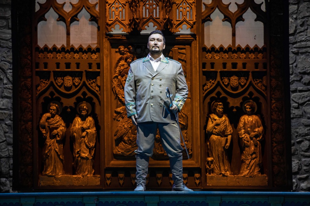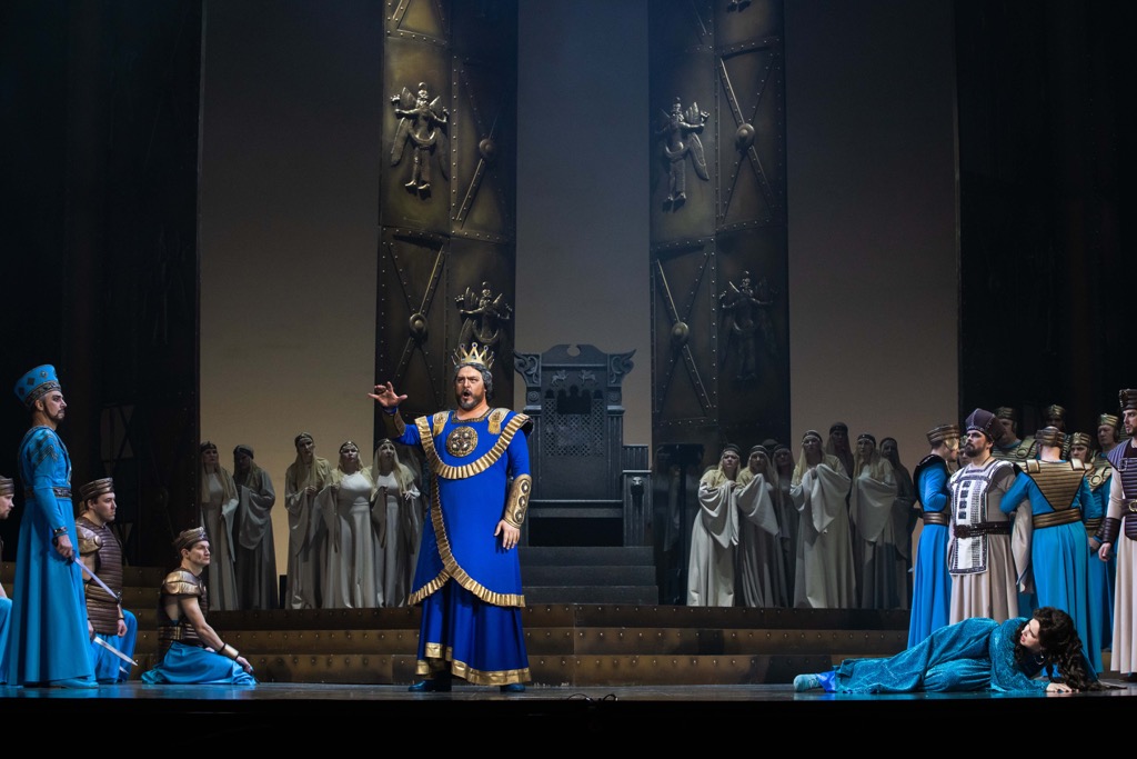 Премьера увиденной постановки «Набукко» состоялась в 2018 году на открытии 36-го Шаляпинского фестиваля. На этом впечатляющем событии в свое время мы останавливались довольно подробно, так что и на сей раз сосредоточимся лишь на впечатлениях музыкальных. Впрочем, не назвать постановочную команду было бы явно неучтиво, тем более что и эту замечательную постановку также осуществил уже знакомый нам по «Трубадуру» Ефим Майзель, а в творческом тандеме с ним вновь выступил Виктор Герасименко (на сей раз не только как сценограф, но и как художник по костюмам). Вместе с ними художником по свету стал Нарек Туманян (Москва), а музыкальным руководителем и дирижером нового спектакля – маэстро из Италии Стефано Романи.