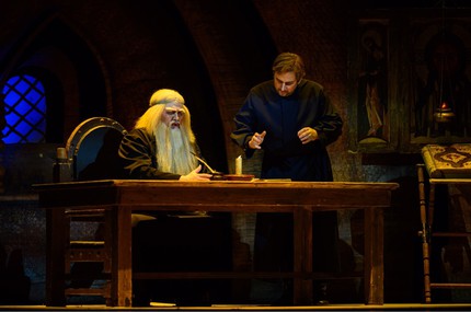 До фестиваля нынешнего года рецензенту довелось побывать на казанском «Борисе Годунове» дважды – на фестивалях 2015 и 2016 годов. Все три раза за дирижерским пультом находился Василий Валитов, и все три раза в титульной партии был занят известнейший отечественный бас Михаил Казаков. Опытный Василий Валитов и в этой музыке доносит до слушателя собственное дирижерское мироощущение, «высказываясь» эмоционально ярко, словно и вправду говоря с публикой. Но это не просто «разговор». Это сакральный диалог, духовное, в высшей степени невербальное общение на языке вечной музыки. Подобно тому, как ее живительные флюиды на уровне подсознания погружают в психологическую трагедию русской истории, сокровенная по природе, но крупноплановая по законам оперного жанра вокальная вербальность, рождаемая Михаилом Казаковым в партии партий русского басового репертуара, погружает в глубины духовного космоса человека, в его вечно мятущуюся душу. А русская душа страдает всегда: она неспокойна и непредсказуема во все эпохи, она вечно болит во всех мыслимых и немыслимых аспектах.