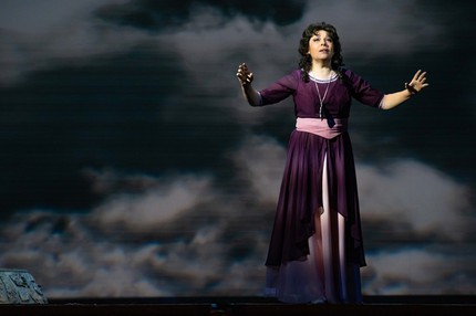 Музыкальная сторона стопроцентно классической постановки, изумительно мастерски решенной мобильными, но образно-действенными современными средствами, оказалась в профессионально надежных руках, и немалый вклад в звучание ее хоровых страниц внесла главный хормейстер театра Любовь Дразнина. Хор – неотъемлемая часть каждой из опер, речь о которых мы ведем в настоящих заметках, но если в «Травиате» и «Трубадуре» хоровые страницы несут важное, но, с позволения сказать, всё же прикладное значение, то в народных музыкальных драмах – и в русском «Борисе Годунове», и в итальянском «Набукко», апеллирующем к теме ветхозаветной истории, – они создают наиважнейший сюжетообразующий пласт, без которого эти оперы лишились бы своего определяющего стержня – той сути, ради которой они, собственно, и создавались. Да что и говорить, для широкой публики опера «Набукко» – это, прежде всего, знаменитый хор плененных иудеев из финала третьего акта! Его только и знают…