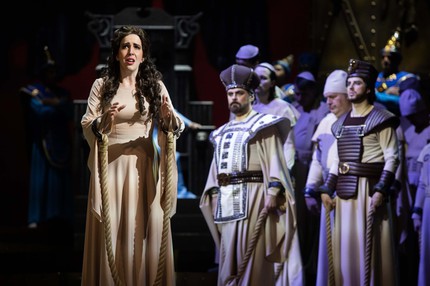 В партии Абигайль, традиционно считающейся «кровавой» для всех драматических сопрано, сопрано Зоя Церерина – солистка ТАГТОиБ имени М. Джалиля – органичностью аффектации, живой чувственностью и рафинированностью экспрессии смогла захватить и на этот раз. А в двух небольших партиях Фенены и Измаила, составляющих единственную любовную линию, которая по раскладке сюжета попадает в разряд второстепенных, хотя для сюжета, конечно же, важна, выступили меццо-сопрано Дарья Рябинко (Красноярский государственный театр оперы и балета им. Д.А. Хворостовского) и тенор Сергей Осовин (Екатеринбургский государственный академический театр оперы и балета). Если Фенена для Дарьи Рябинко – партия, впетая еще с премьеры, партия, стилистически выверенная и драматически прочувствованная, то Измаил для Сергея Осовина – удачный двойной дебют: фестивальный и ролевой. А когда в спектакль вливаются новые певческие силы – молодые, свежие и перспективные, – это значит, что счастливая жизнь спектакля продолжается…