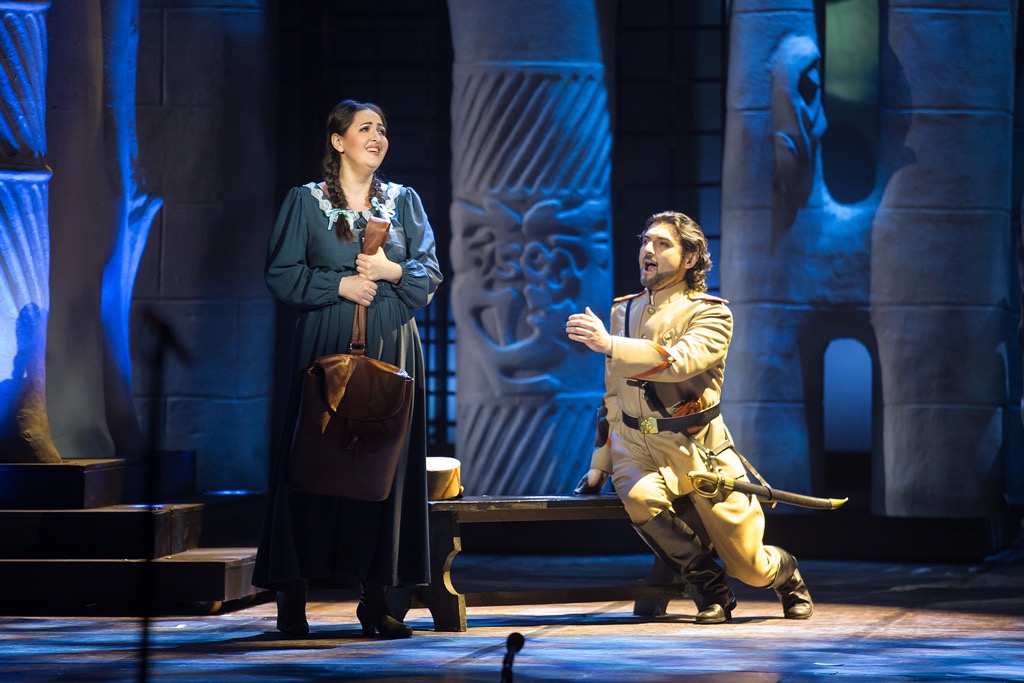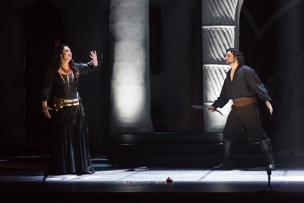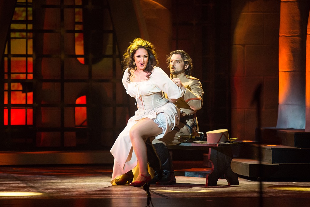 Кипение испанско-цыганских страстей, упакованных в музыкальную французскую обертку, – то, что всегда ждешь от этой популярнейшей партитуры Бизе. Если же говорить о постановке в целом, то захватить флюидами этих страстей она так и не смогла: этнически живописного антуража для ощущения аромата романтически обволакивающей, чувственно живой атмосферы явно недоставало. Но если говорить о великолепном перевоплощении Агунды Кулаевой в партии Кармен, о перевоплощении, которое как в вокальном, так и в артистическом аспекте предстало притягательно ярким и рафинированно многогранным, необычайно рельефным и безоговорочно располагающим к зрительскому доверию, то оказаться на этой премьере однозначно стоило! Меццо-сопрано Агунда Кулаева – певица опытная, и в партию Кармен давно уже вросла всем своим вокальным и артистическим существом. При этом нельзя не отметить: всё то, чем она так поразила в этой постановке, произошло не благодаря, а вопреки тому, что с оперой «Кармен» вдруг решили поиграть ее постановщики. Чудо подлинного перевоплощения произошло благодаря темпераментности и рафинированно-чувственной музыкальности певицы!