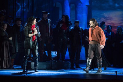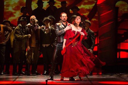 Премьера «народной» – в смысле горячо любимой широкими массами трудящихся – оперы Бизе «Кармен» прошла в столичной «Новой Опере» на волне и под знаком нового руководства этого театра. После ее посещения 19 февраля прийти к консенсусу с самим собой оказалось довольно легко: «картинка» и «саундтрек» предстали, в целом, вполне зачетными, профессионально добротными, особенно «саундтрек» в части певцов-солистов. Получить истинное меломанское удовольствие от ярких вокально-артистических работ оказалось возможным даже при той заштампованной рутине, что царила и в оркестре, и в неоправданно зычном звучании хора «Новой Оперы», который, несомненно, знает толк в масштабных эпических оперных полотнах (хормейстер – Юлия Сенюкова), однако перед изысканностью нюансировки и музыкально-легкой прозрачностью французского стиля на сей раз спасовал…