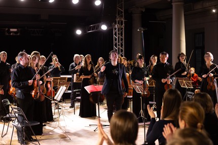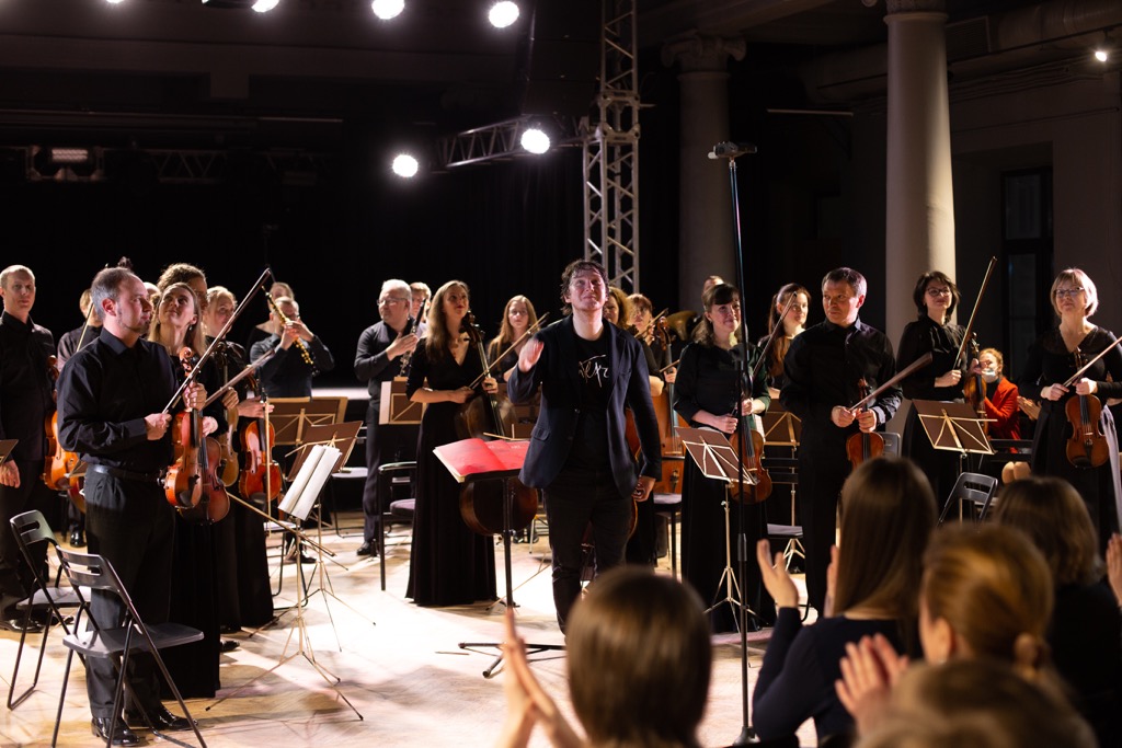 При этом Емельянычев обходится без дидактического напора. Основная его задача – поделиться с публикой тем интересным, замечательным, необыкновенным, что было открыто на репетициях с оркестром. Это простая, доверительная и, по-моему, весьма современная форма диалога со слушателем. То, что в зале DKRT (бывший Дом культуры имени Свердлова и еще более «бывшее» Дворянское собрание) исполнители пространственно находились на одном уровне с публикой, очень помогало и тем, и другим. И Моцарту.