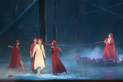 Не менее яркой и сочной вокально-драматической работой стало исполнение партии Купавы Марией Баянкиной: образ получился не прямолинейным, но многогранным, благодаря сочетанию мизансценной программы роли с насыщенным, сияющим тембром певицы.