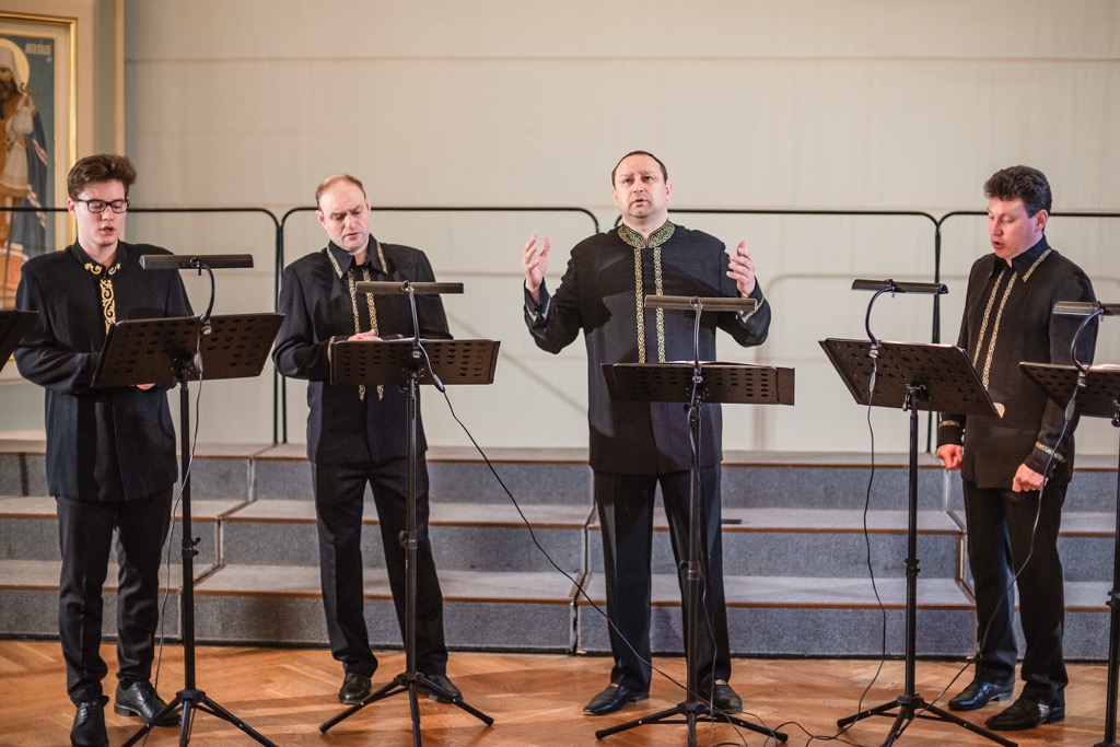 Впервые встретиться с творчеством Мужского хора «Оптина пустынь» довелось ровно 10 лет назад на концерте в Храме Григория Неокесарийского в Дербицах, что на Большой Полянке в Москве – и тоже в рамках Пасхального фестиваля. Общее число певчих в этом хоре – 12, и все они – выпускники Санкт-Петербургской консерватории. Их гастрольное количество – обычно 7-9 (на этот раз было 8, а вместе с регентом музыкантов-участников было 9). Программу и на этот раз составили церковные песнопения в ярком спектре жанров и стилей. Ее первый блок – современные дешифровки древнерусского многоголосья. Его пристальное изучение в числе творческих устремлений коллектива было всегда: начавшись с момента основания хора в 1996 году, оно продолжается и сегодня, и этот репертуар давно уже стал общепризнанным фирменным коньком коллектива.