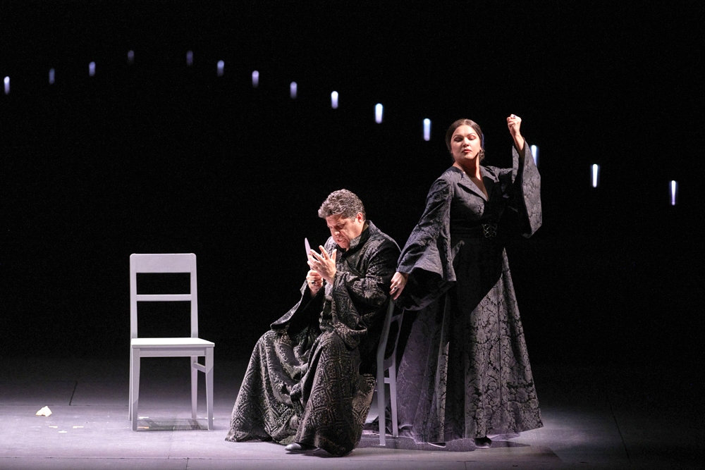 Музыкальную концепцию маэстро Джордана я бы назвал реставрацией авторского замысла: в какой-то момент у вас просто не остаётся сомнений, что у маэстро был спиритический сеанс связи с духом Верди. Буквально всё, что мы знаем об истории этой оперы, о её мелодекламационной ткани, очень знаковой для понимания её значения в истории жанра, о двух речитативных монологах Макбета (размышления перед убийством Дункана) и Леди Макбет (сцена сумасшествия), о нюансах построения хора ведьм, — всё было воплощено в Вене с педантичной скрупулёзностью. От себя замечу, что такие прочтения нередко становятся «проблемой»: после них очень сложно слушать старые записи.