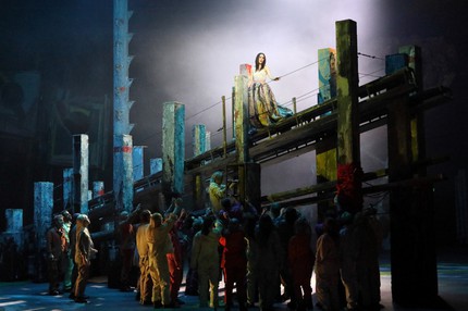 Прекрасны были и Мартин Миттеррутцнер в партии Арбака, и Каспар Сингх в партии Верховного жреца Нептуна, и голос Оракула в исполнении Каллума Торпе, и слаженный мощный хор, и миманс, и каскадёры, и даже артисты балета, которым пришлось изображать совсем не то, на что они училась, — весь сценический ансамбль был бесподобен, всё работало на грандиозную мелодраматическую сверхзадачу представления.