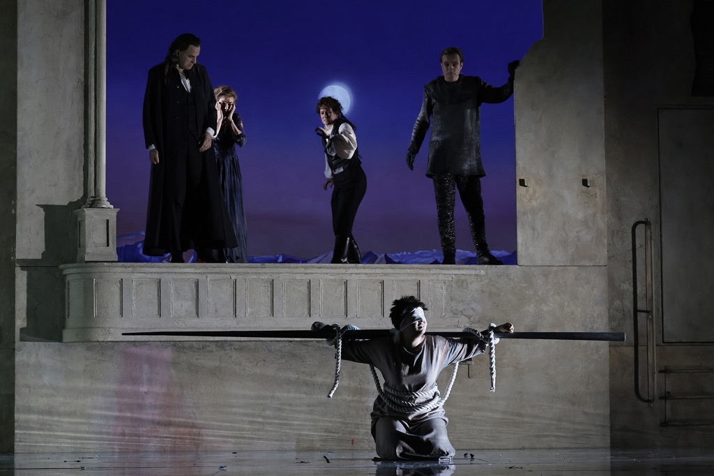 Сразу отметим, что музыкальная планка нынешнего театрального проекта, в целом, встала на уровень упомянутого концертного исполнения в Москве десятилетней давности, но по ряду частных вокальных «номинаций» спектакль Большого театра всё же предстал в более выигрышном свете. Начнем с «рокировочной» пары голосов: партия-травести Ариоданта, влюбленного в Джинерву, отвечающую ему взаимностью, на сей раз досталась ирландской меццо-сопрано Пауле Муррихи, а партия Полинесса, прокладывающего себе дорогу на шотландский престол через альянс с Джиневрой, – знаменитому французскому контратенору Кристофу Дюмо. Творческий век контратеноров, как известно, недолог. Но после стольких лет активной международной карьеры, начавшейся для Кристофа Дюмо в 2002 году, его вокальная форма до сих пор поражает техничностью и виртуозностью, а сам его голос с фактурой звучания довольно плотного контральто – свежестью и «серебристо-звонкой» чувственной яркостью, роскошно коррелирующей с потайным нутром его героя.
