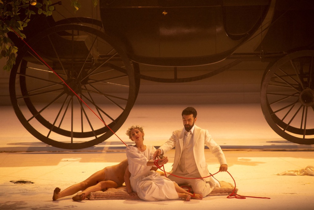 О незримой взаимозависимости реалий, фактов и деталей режиссёр напоминает посредством непременно присутствующих в его спектаклях нитей: нитями зашивает в могильный матрац костыль Командора Донна Анна, нитями привязывает дерево (древо познания Добра и Зла) к матрасу наслаждения искуситель Дон Жуан в дуэте с Церлиной, которую он опутывает, как и Донну Эльвиру, канатами своего сексуального обаяния. Любопытно, что Дон Жуан практически не касается своих жертв: его магнетизм так же незрим и неуловим, как и окутывающая зрителя полутуманная символика спектакля.